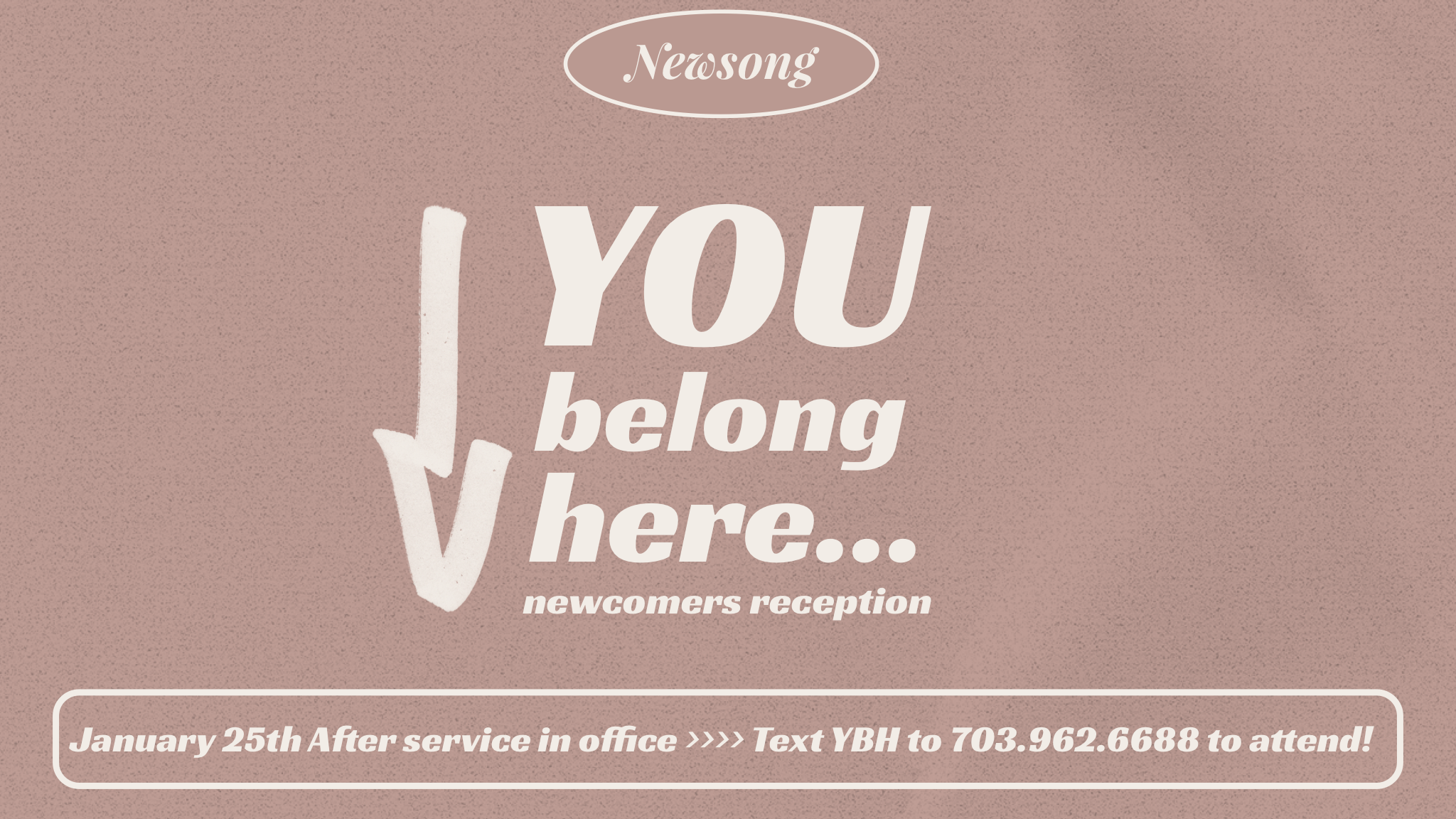 Recently joined NewSong? Whether it’s been a week, a month, or a season, join us after service on Sunday, February 1st for a brief overview and a chance to meet some of our volunteers, staff, and pastors. Text BELONG to 703.972.6688 for more information!